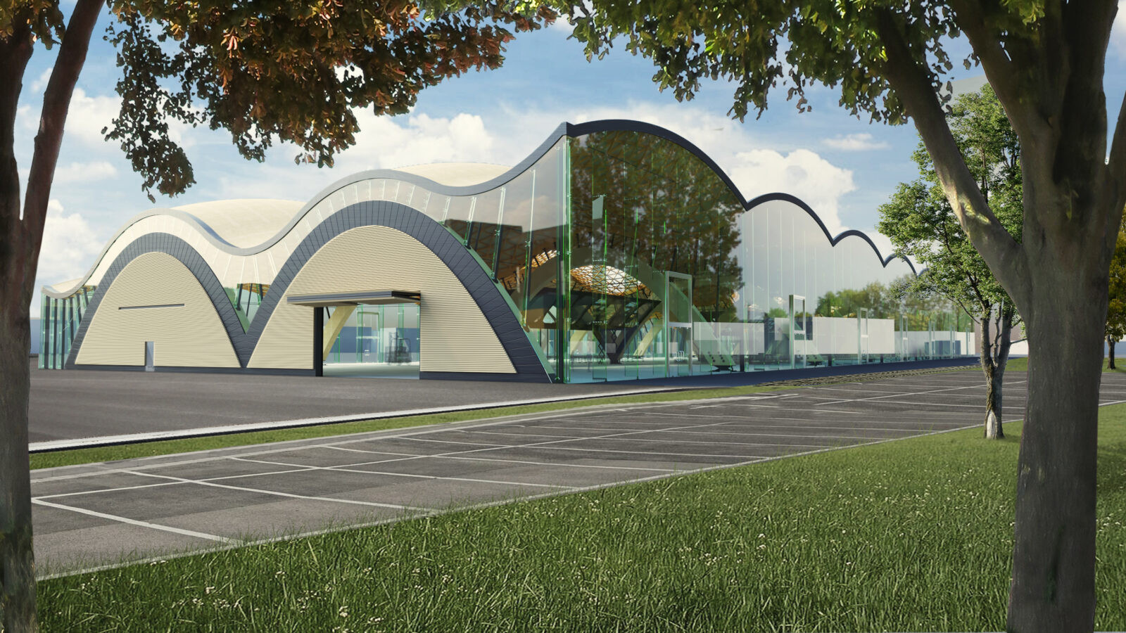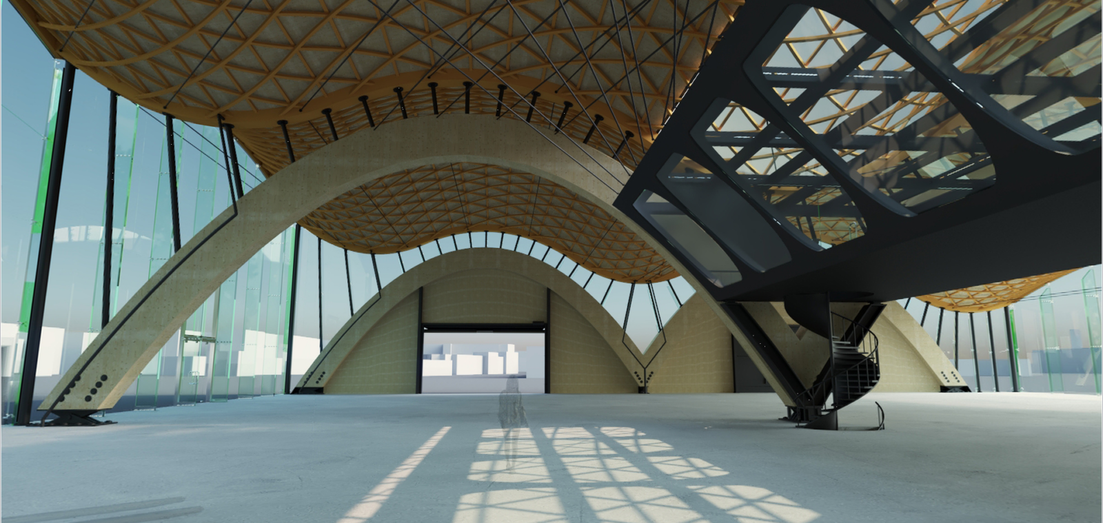 Im Rahmen der Master Thesis habe ich eine durch Bögen konstruierte zweischiffige Industriehalle mit
