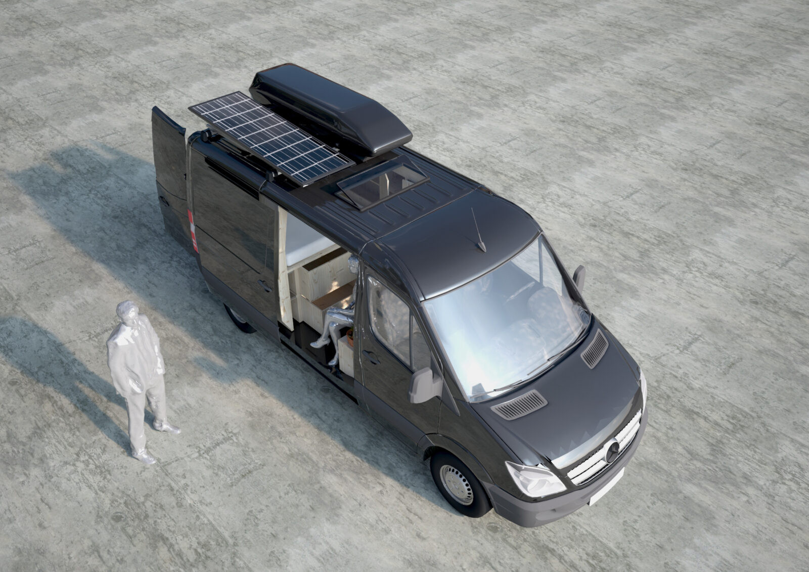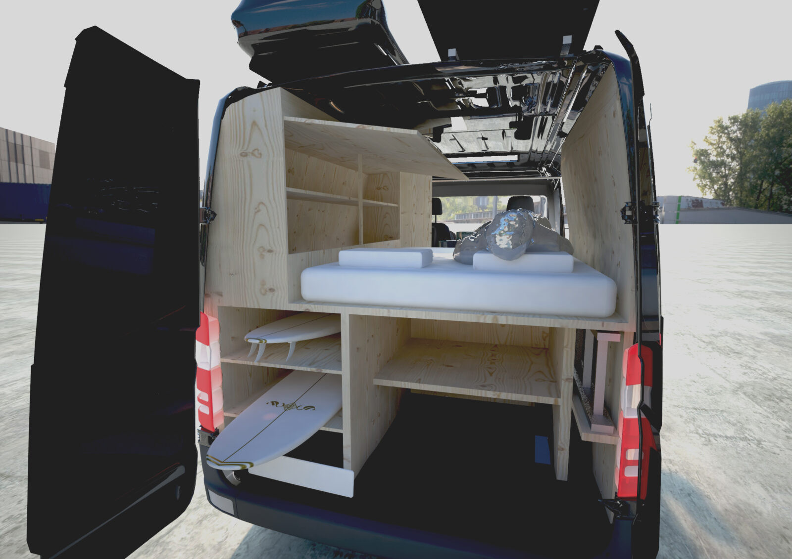 Für ein individuelles „Vanlife“-Projekt habe ich den Innenausbau eines Mercedes Benz Sprinters geplant.