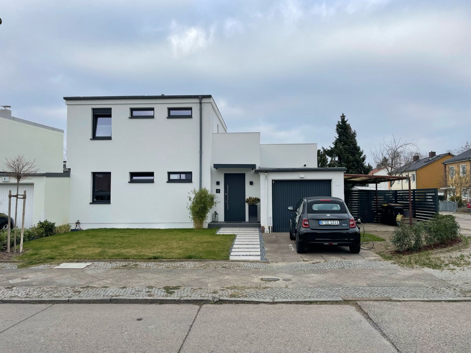 Ziel war die Erstellung einer hochwertigen Außenvisualisierung für das Bauschild. Die Darstellung sollte potenziellen Interessenten und Anwohnern einen realistischen und attraktiven Eindruck der geplanten Architektur vermitteln.