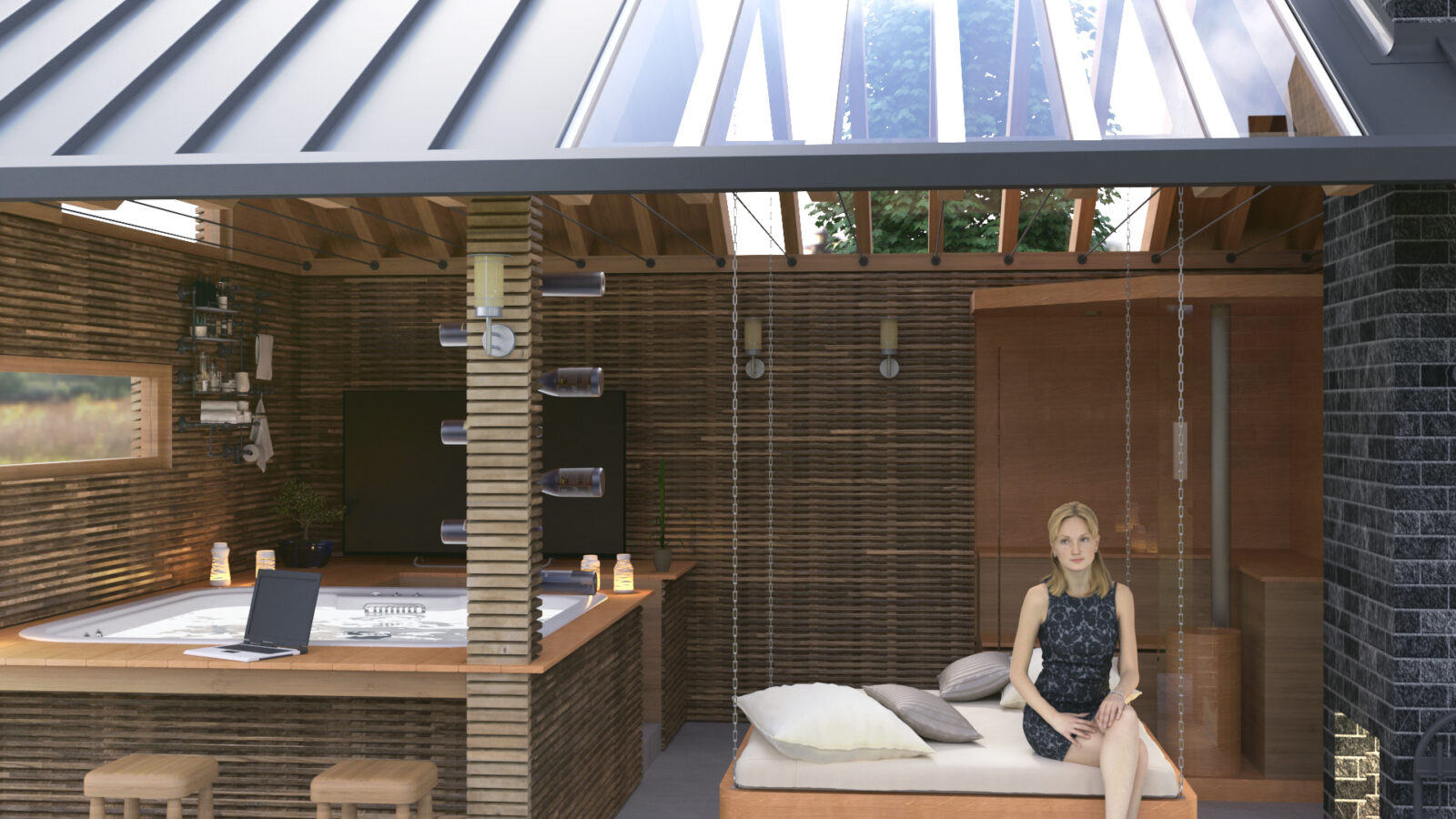 Ein modernes Wellness-Gartenhaus für einen Kollegen und Bauingenieur habe ich als Rückzugsort für