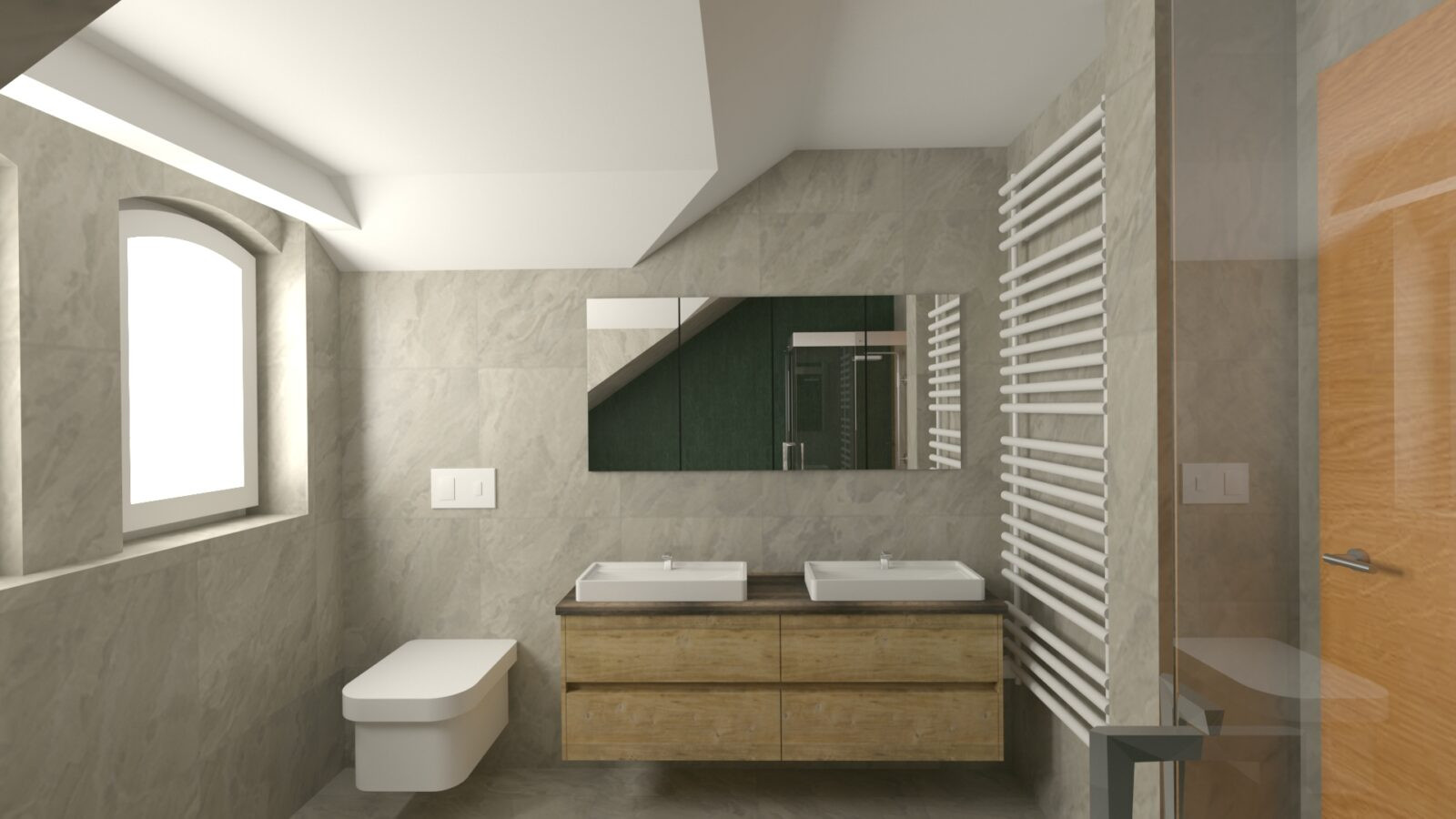 Badezimmers inklusive einer angrenzenden, maßgefertigten Ankleide entwerfen und visualisieren.